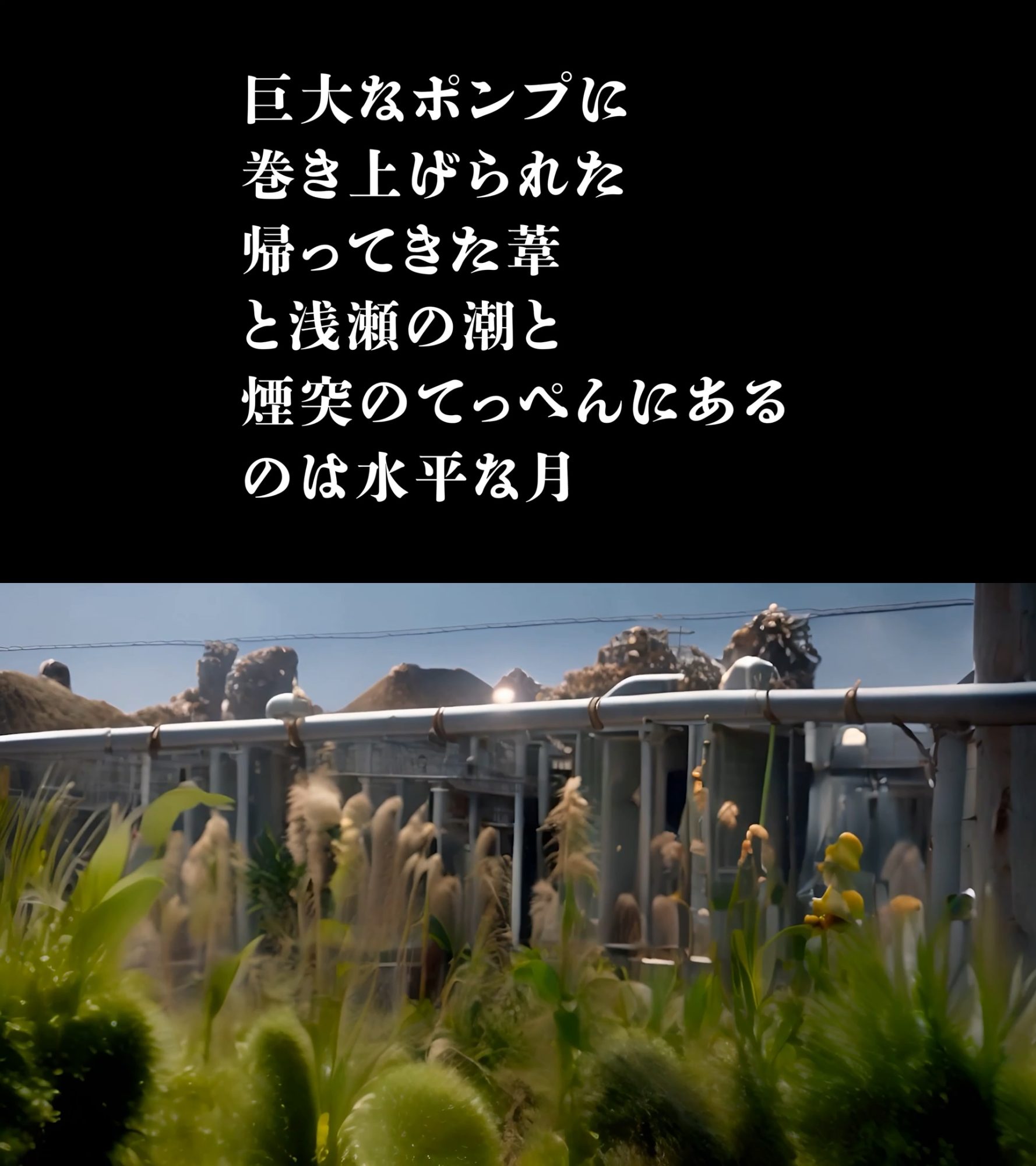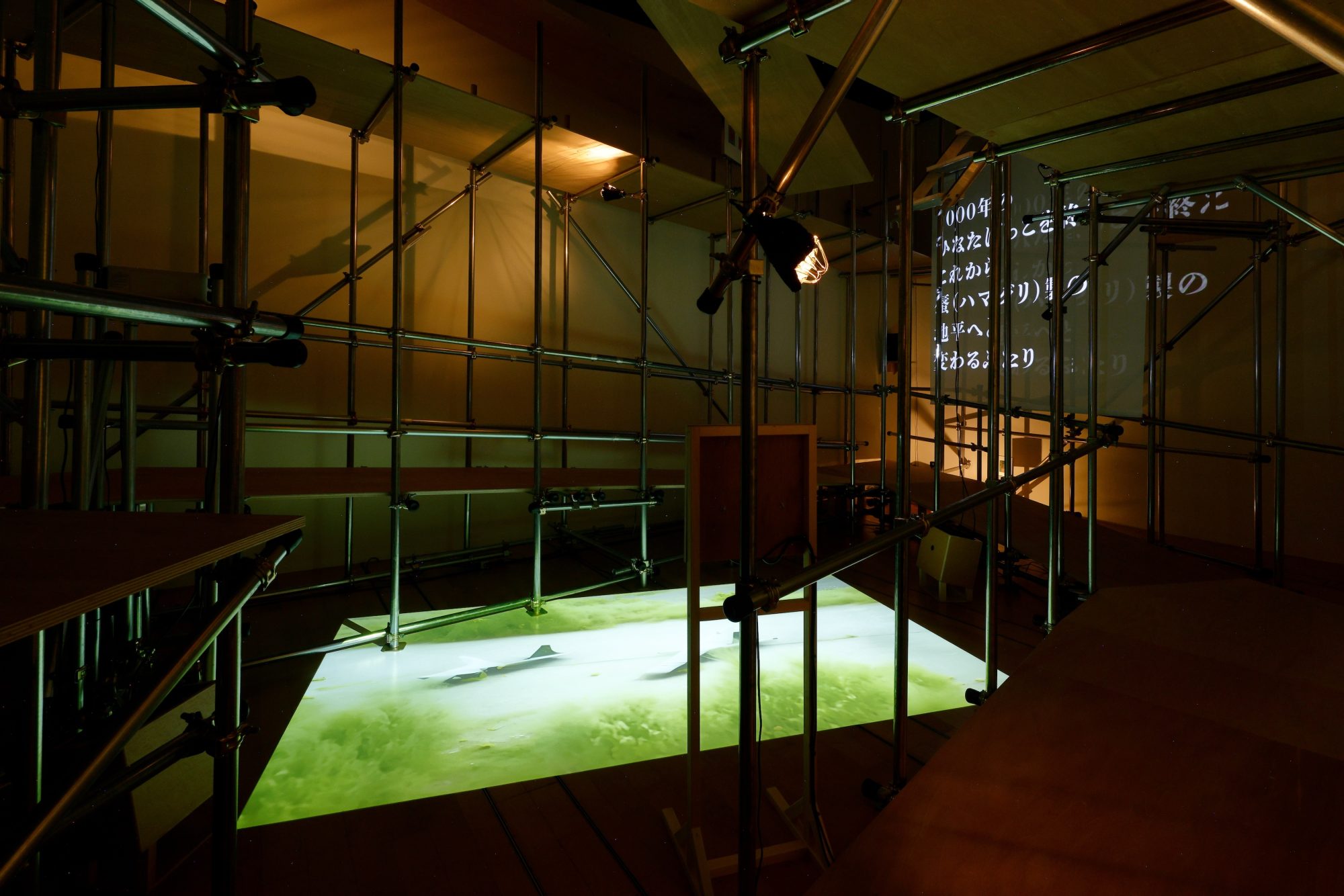 青柳菜摘と細井美裕は、今回初めてのコラボレーションを行ない、インスタレーションを制作しました。ふたりは東京湾の人工島(埋立地)で映像と音声の収録を行ない、それを素材として、現在を起点とした、拡張された現在として、過去と未来を透視させる場を作ることを試みています。それは、現在の東京から遥か遠くの過去や未来を想像することでもあるでしょう。