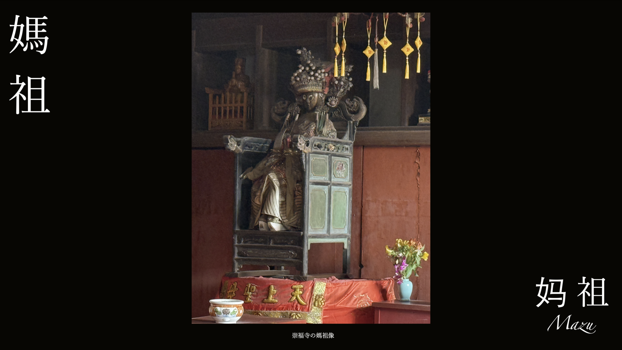 Due to the difficulty of restaging the original work, this presentation reconstructs it as a lecture performance. Moving between documents, footage, and spoken word, it traces the history of seafaring, the names and stories of ships, and the figures of Mazu quietly present in various corners of the world — gathering the dispersed fragments back into a single continuous time.